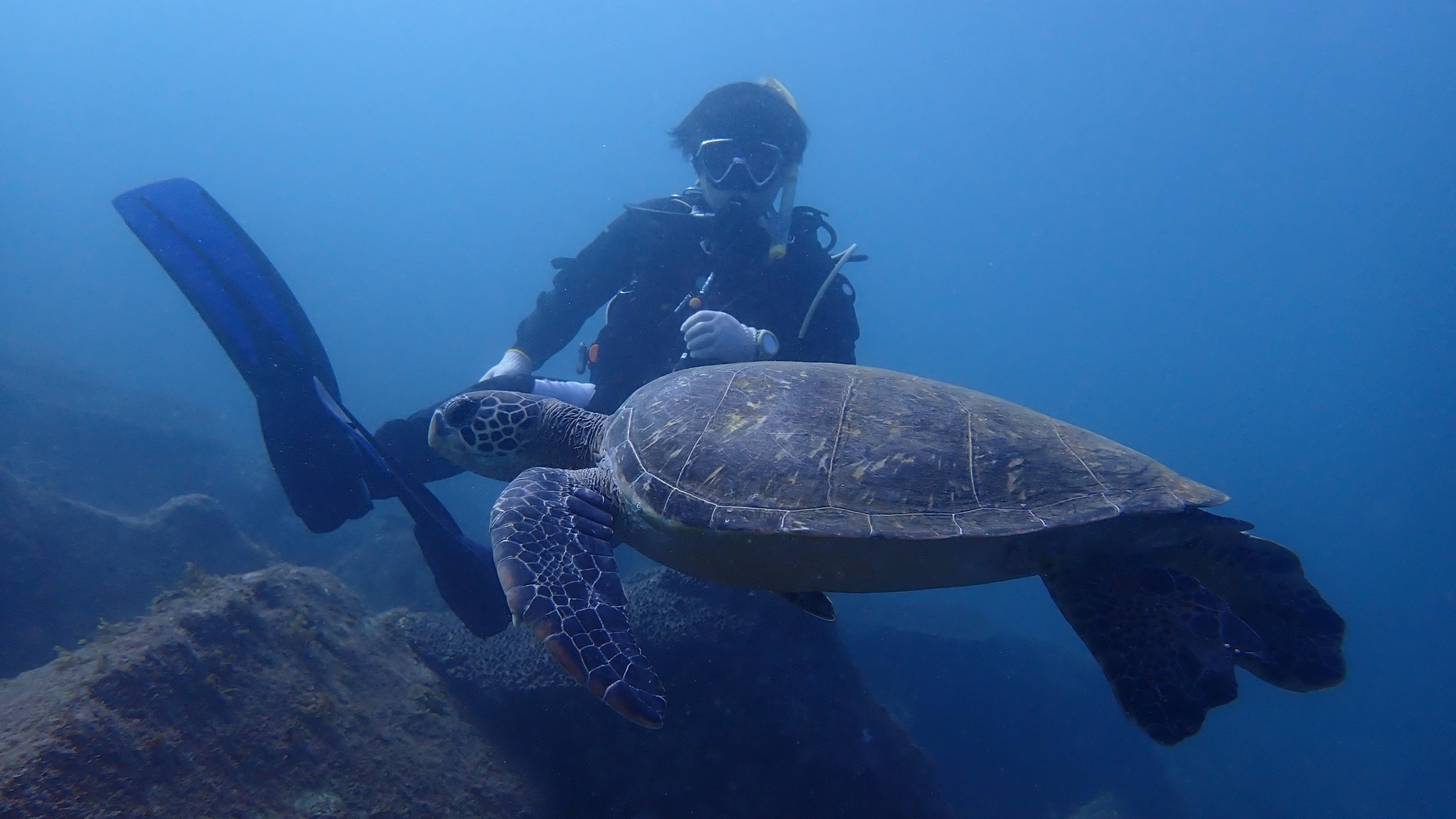 カメと一緒に泳いでる人間がイッセーです(笑)